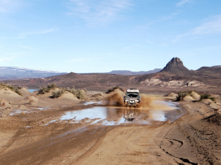 - Véhicule équipé "grand raid » pour les bivouacs.